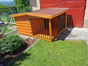 A kutyaház és a terasz belmagasságát 10 cm-rel megemeltük az alapmodellekhez képest, így a nagyobb kutyák is kényelmesen elférnek. A fedett terasz alapterülete pedig megegyezik a ház méretével – ez különösen kényelmessé teszi a használatát.