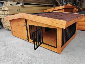 A ház és a terasz belmagassága 10 cm-rel magasabb az alapmodellekhez képest, így nagyobb testű kutyák számára is kényelmes mozgásteret biztosít.