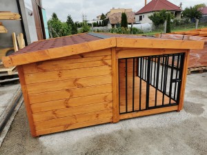 A kutyaház és a terasz belmagasságát 10 cm-rel megemeltük az alapmodellekhez képest, így a nagyobb kutyák is kényelmesen elférnek. A fedett terasz alapterülete pedig megegyezik a ház méretével – ez különösen kényelmessé teszi a használatát.